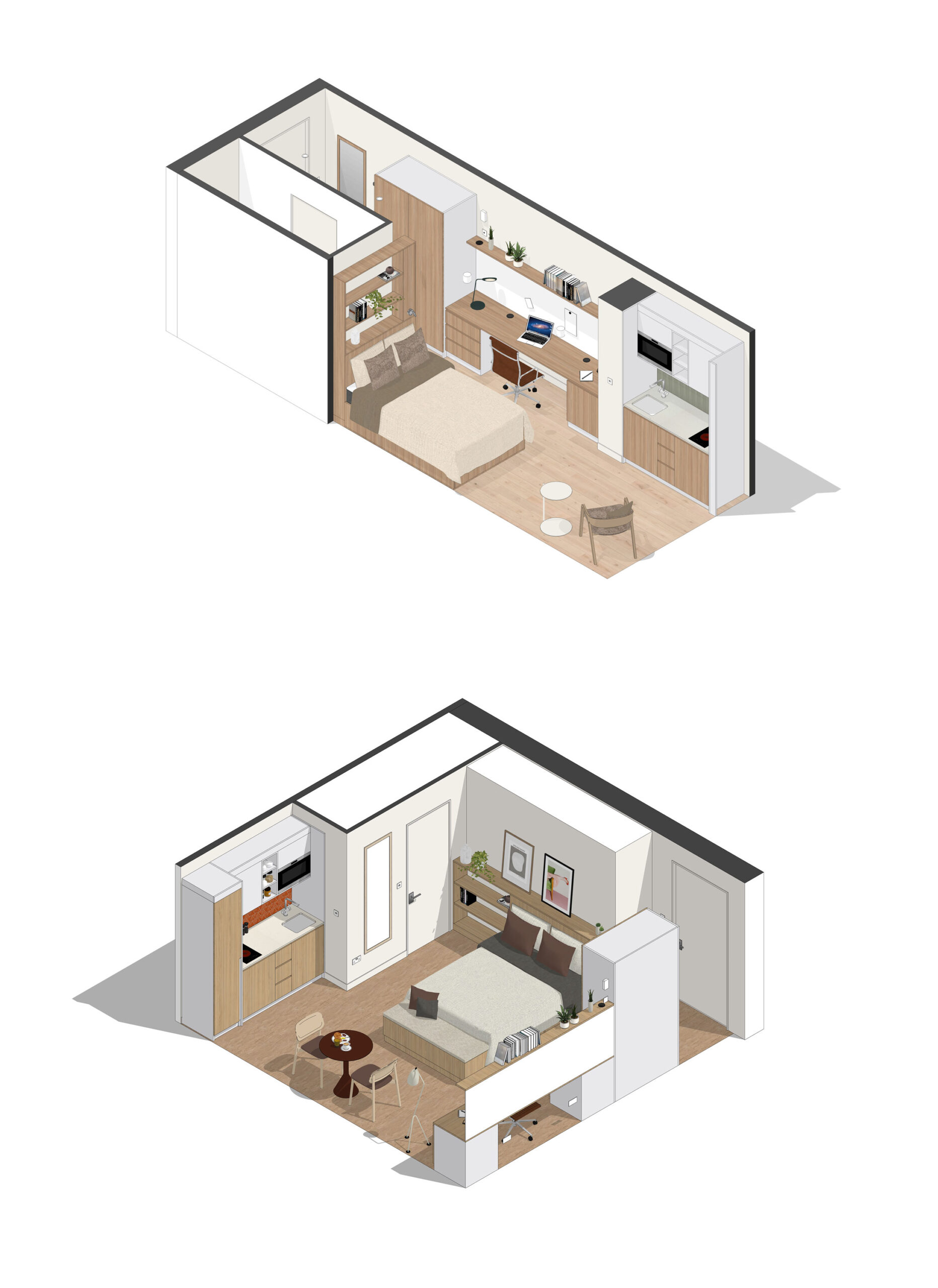 Aligned with our design pillars for this project we are bringing an element of individuality and self-curation. The ability for everyone to create their own sense of home. To heighten this individuality, we have purposely made bed heads and shelving details that we really want students to use and curate helping making these rooms as personal as possible and heightening a sense of home form home.
