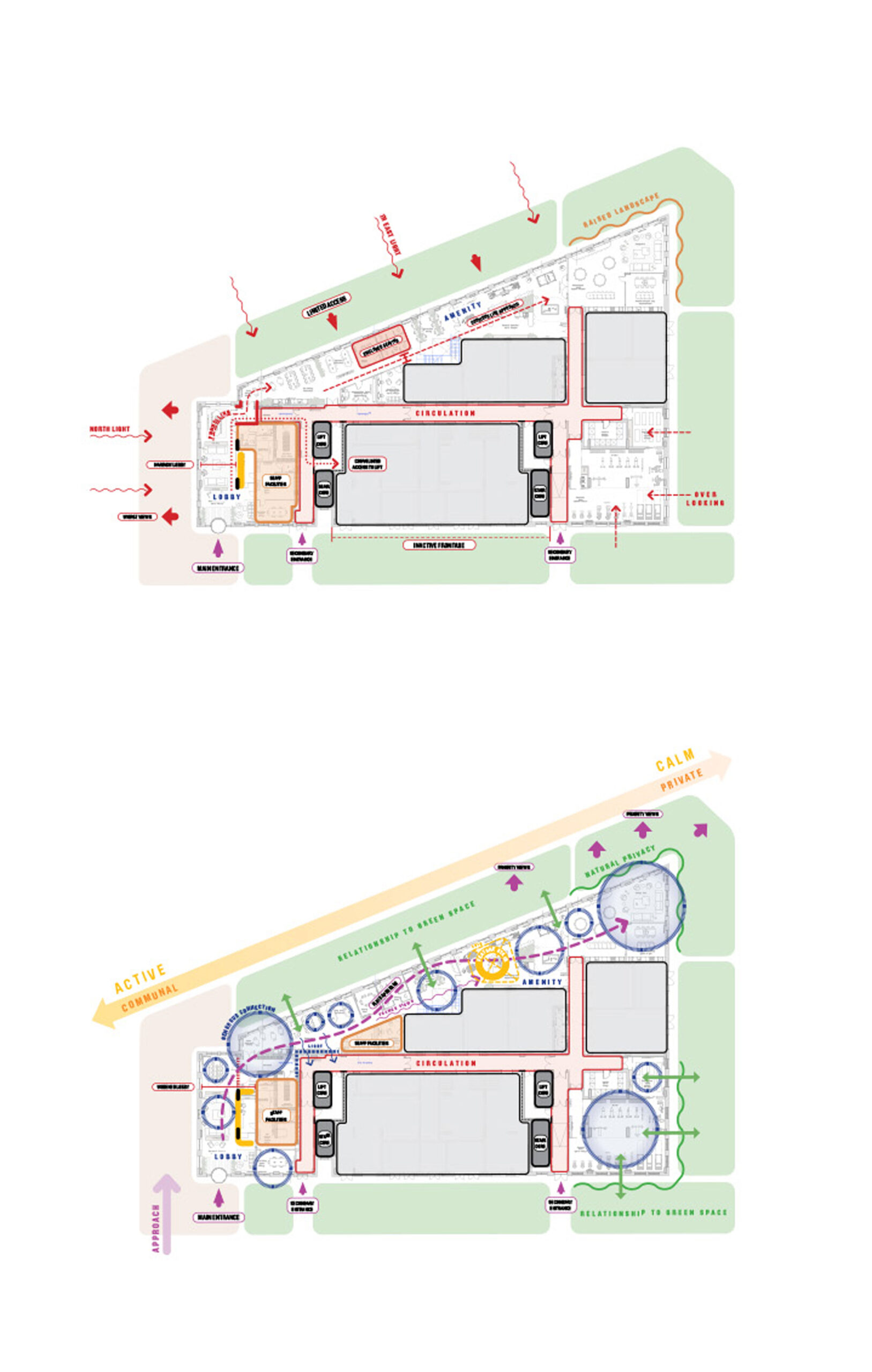 At the core of our design journey on this project we worked with Greystar to learn about the key philosophy and narrative journey that guides the Canvas brand. Our design was based around the 6 key design principles or pillars : Connections to nature, social connectedness, foster physicality, encourage mindfulness, focus on nutrition and successful sleep.