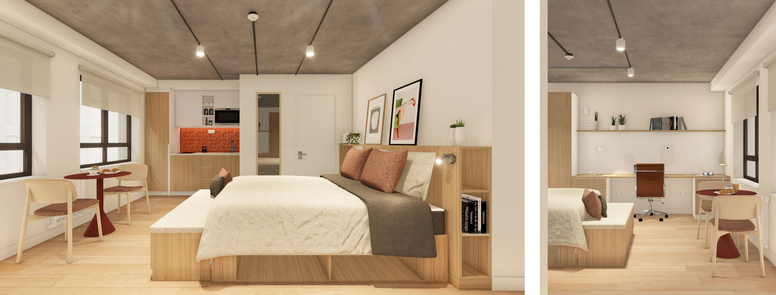 Our approach to the rooms and corridors of the building was grounded in the same rigor of the amenity spaces. We wanted the residence to sense a coherence in design from the start of their daily journey from entering the building right through to the point they drop their bag and site down in their room.